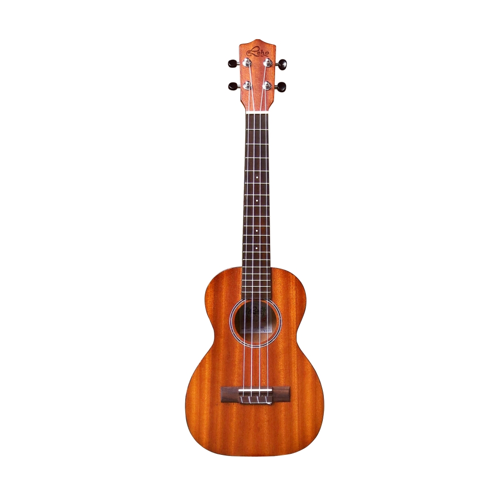 Ukelele LEHO LHUT-MM Tenor. Tapa, fondo arqueado y aros en Caoba laminada. Roseta tradicional Leho. Binding imitación concha de tortuga. Mástil de Nato. Diapasón de Palosanto laminado. 18 trastes en nickel plateado. Puente de Palosanto macizo. Longitud de escala 430mm. Cejuela GraphTech Nubone XB. Clavijeros mecánicos con pastillas negras. Cuerdas Aquila. Incluye funda de protección y transporte