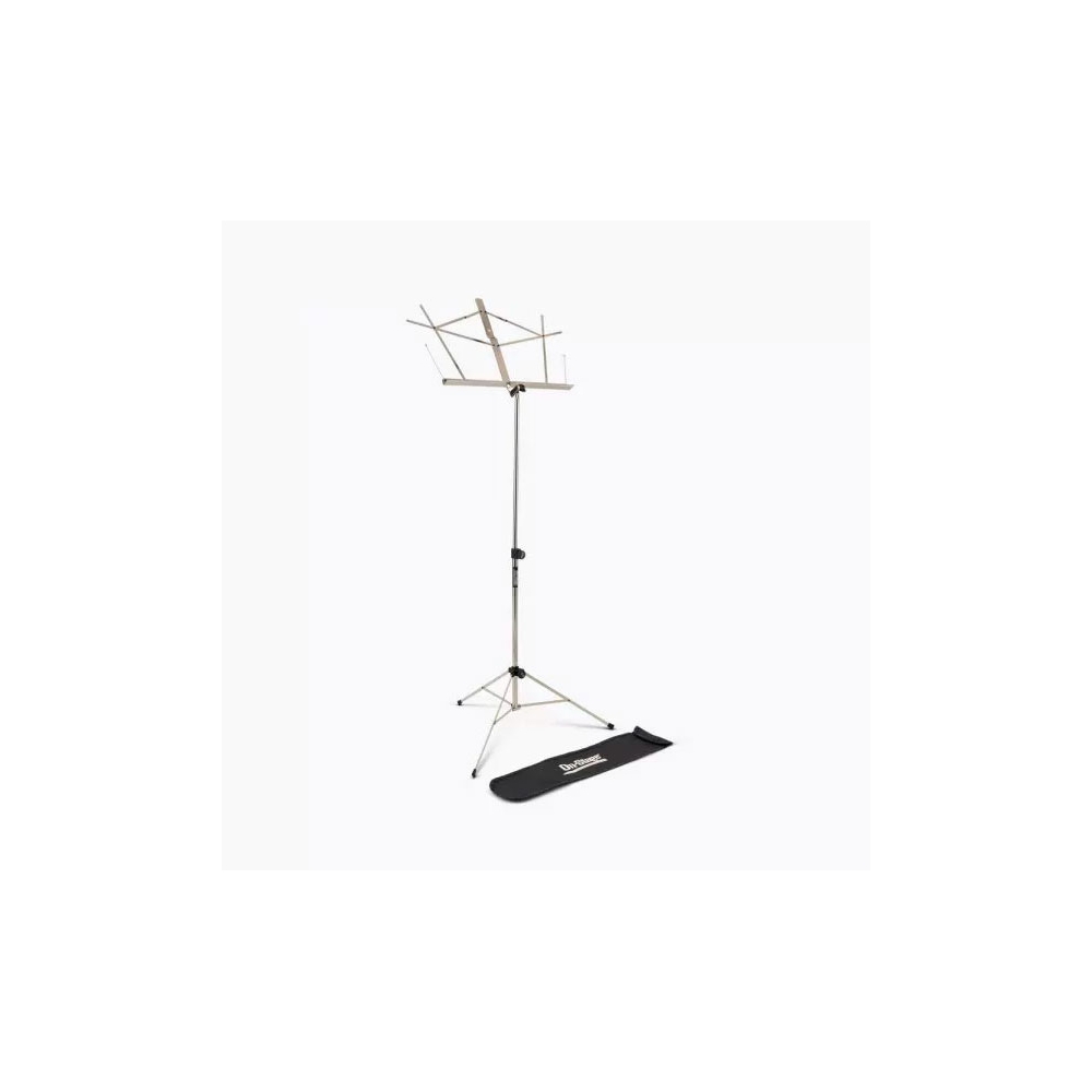 Este atril de diseño clásico se pliega fácilmente para su almacenamiento y transporte.Las dos secciones en altura y su articulación en la bandeja hacen que se pueda ajustar tanto para su uso sentado como de pie.Este atril viene con una bolsa negra de transporte con correa de hombro. Todos los bordes están ribeteados y su material resistente hace de esta bolsa una inteligente elección para proteger tu atril